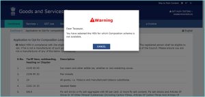 If HSN Code selected by taxpayer on GST portal are not eligible for Composition scheme then system will pop-up a waring notification. A taxpayer can’t proceed to file GST CMP-02 unless such HSNs are removed from the list of commodities.