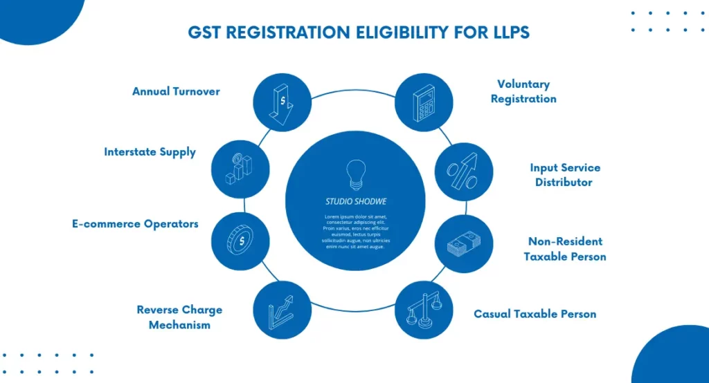 GST registration is mandatory for LLPs under specific conditions to ensure compliance with tax regulations and to avail the benefits of input tax credit. Here are the detailed eligibility criteria for GST registration for LLPs: