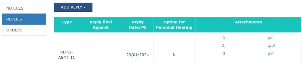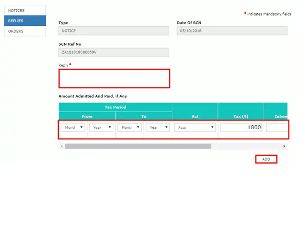 - Reply can be furnished under the reply column and a detailed reply should be attached. Admitted amount paid through DRC-03 should be mentioned in “Amount Admitted and paid” column