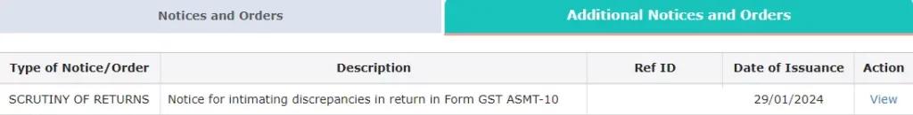- Under View additional notices and orders, taxpayer will be able to view all notices and orders issued against the taxpayer.