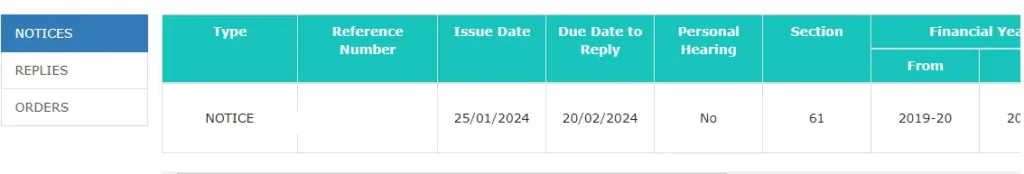 - Post clicking on view button, the taxpayer can view the notice issued.