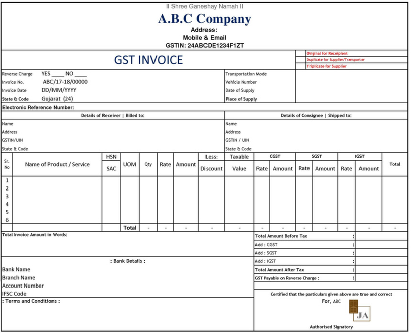 As per Indian laws, a bill of sales for goods or services should always accompany any transaction. As such, when merchants deem it fit to include such goods and services, a GST invoice should be sent to the buyer in compliance with GST laws enacted on 1st July 2017. This requirement is vital in fostering tax compliance. The image below shows a an ABC Company GST invoice: