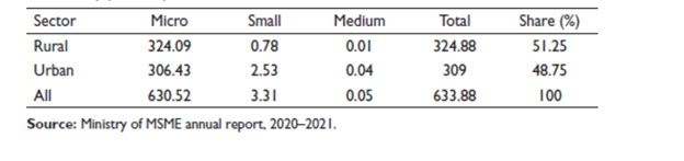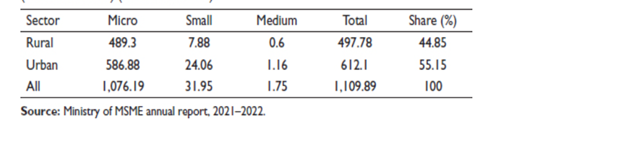 As the country’s second-largest employer (behind agriculture), the micro, small, and medium-sized enterprise (MSME) sector is noteworthy while requiring relatively little capital. There was an increase of 1,109.89 lakh jobs in India’s MSME sector between 2015 and 2016, according to the 73rd wave of the National Sample Survey. The percentage of people employed in this sector is 55.85% in urban regions and 44.85% in rural areas.